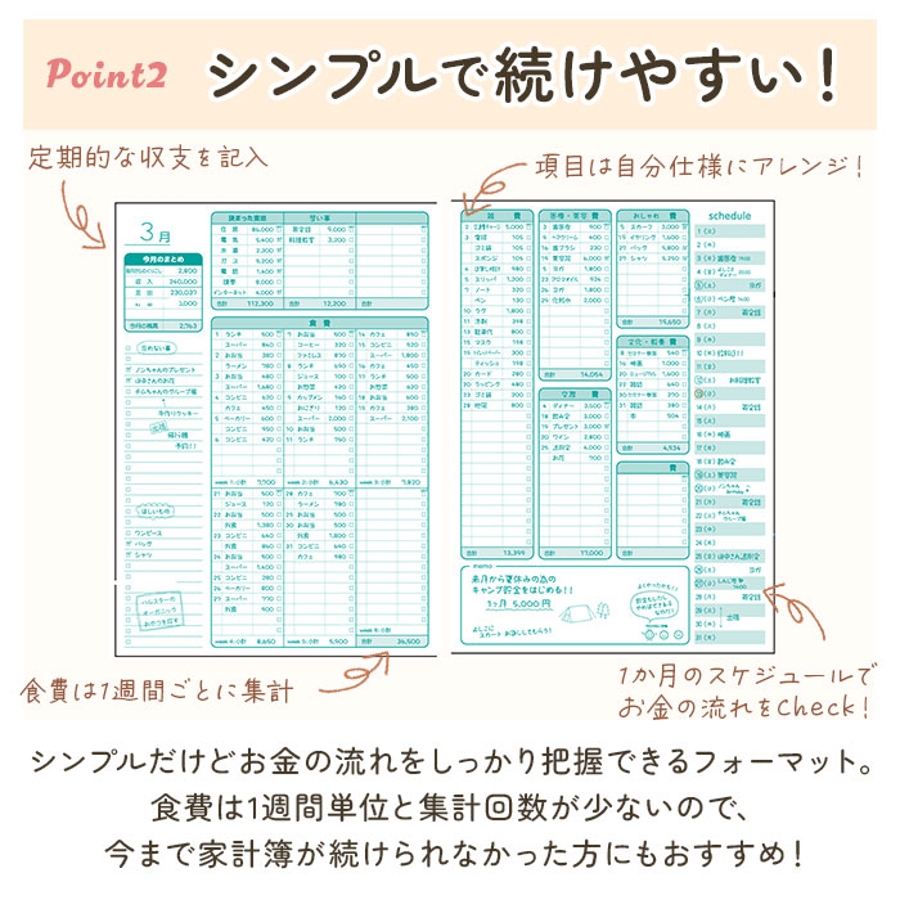 ・シンプルなフォーマットで、家計簿初心者の方や家計簿がなかなか続かなかった方にもおすすめ♪