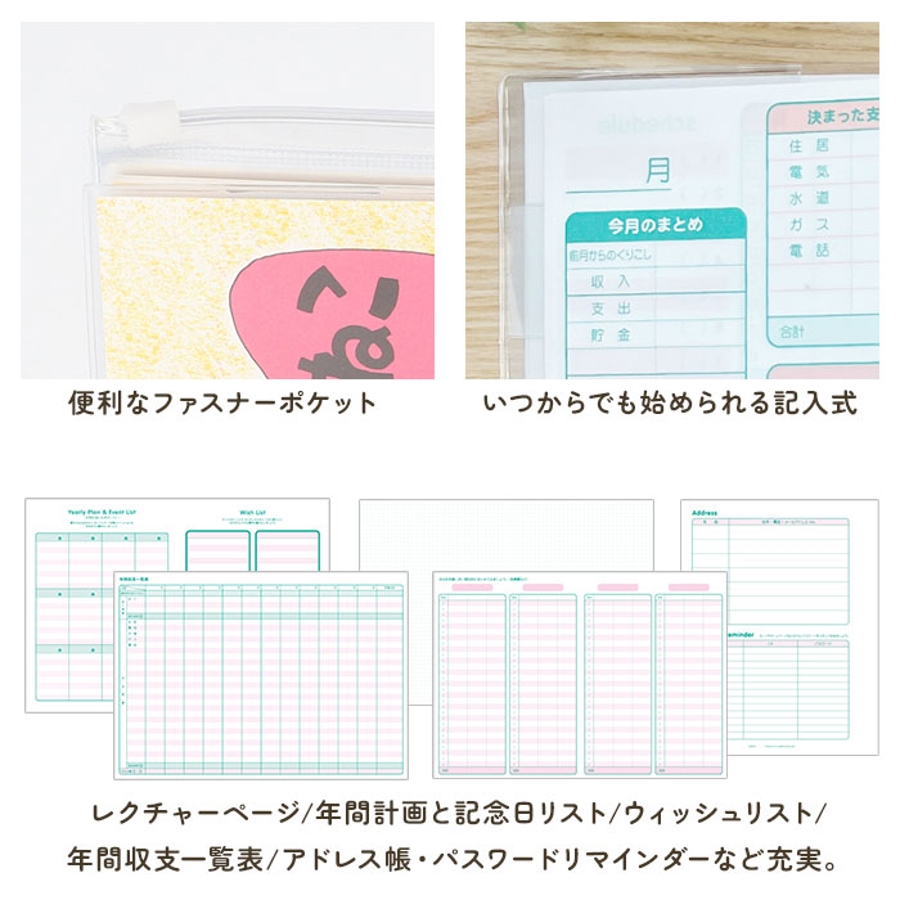 ・レクチャーページや年間計画と記念日リスト、ウィッシュリスト、年間収支一覧表、パスワードリマインダーなども装備。