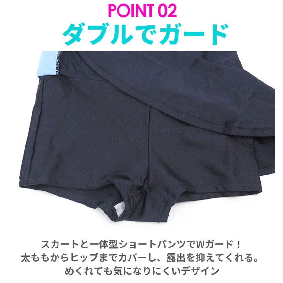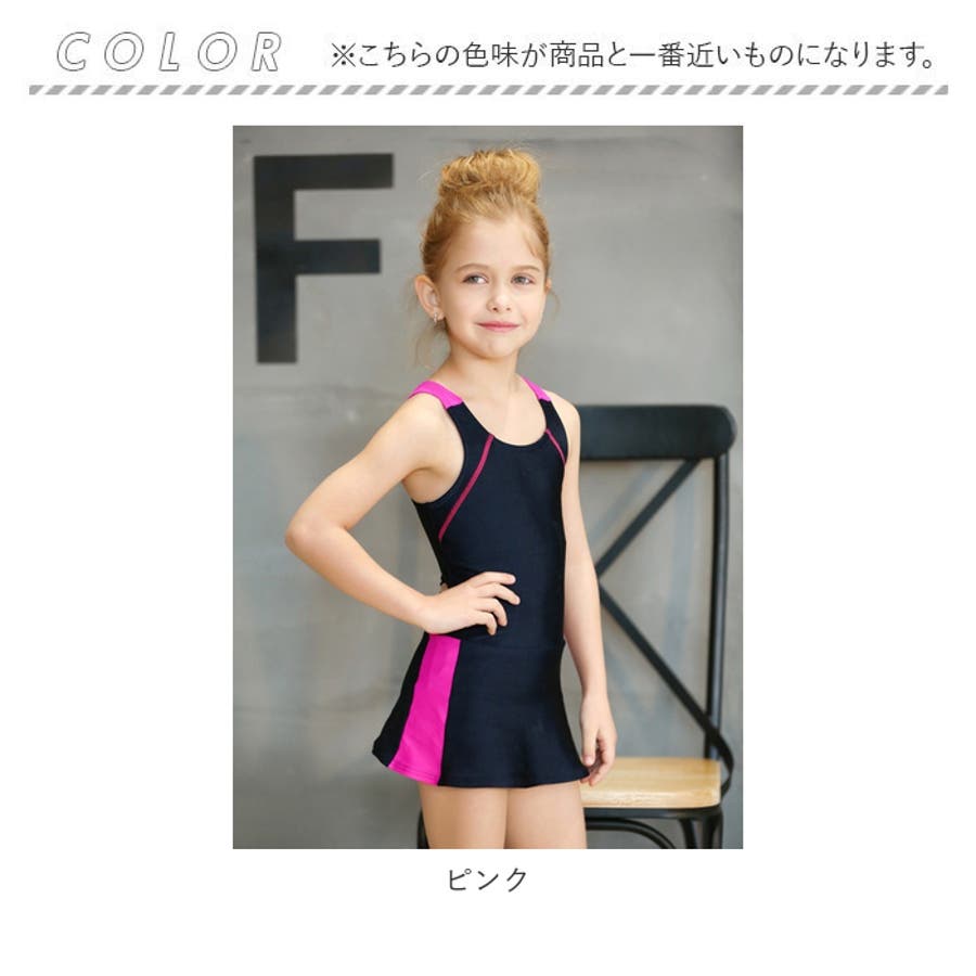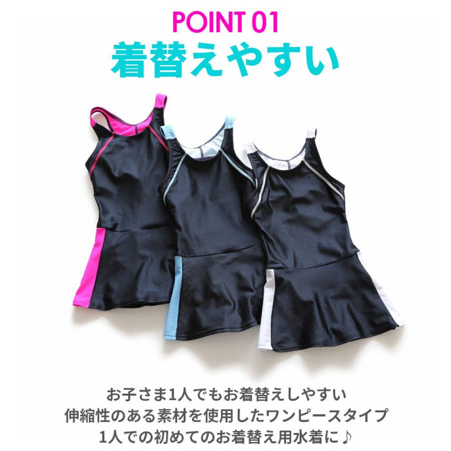 【キーワード】ワンピース オールインワン ポップ キュート バイカラー風 スカート ショートパンツ 一体型 キッズ 水着 一体型 ワンピース型水着 ネームタグ 紛失防止 伸縮性 裏地付き 裏地 お腹 冷え防止 デザイン ビキニ焼け 心配なし 脱ぎ着 ラクチン おしゃれ 水泳 泳ぎ 遊び