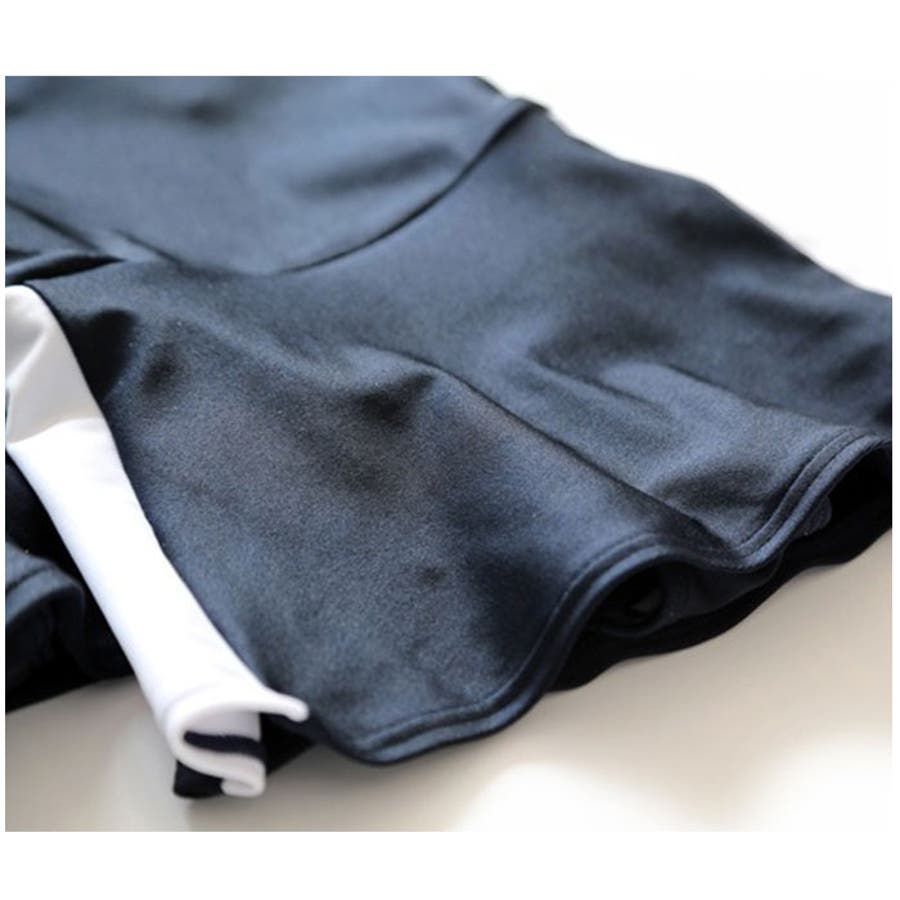 ・ネイビーベースに太めのライン使いがアクセント。学校の授業やプール教室、レジャーで活躍。