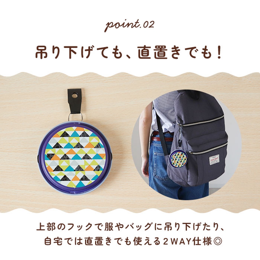 ・上部に付いたフックで、ズボンのベルトやリュックのカラビナなどに掛けて使える吊り下げタイプ。