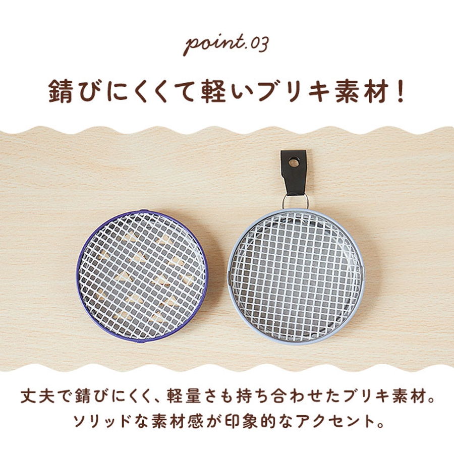 ・丈夫で錆びにくく、軽量さも持ち合わせたブリキ素材。ソリッドな素材感が印象的なアクセント。