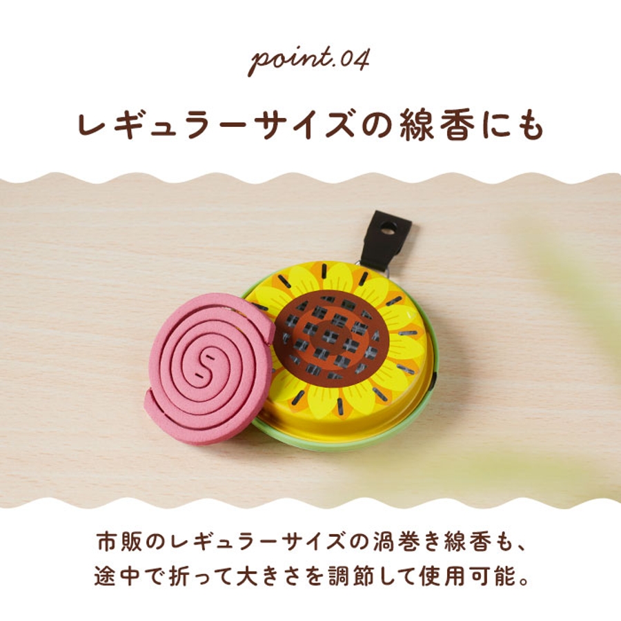 ・市販のレギュラーサイズの渦巻き線香をご使用の際は、途中で折って大きさを調節して使用可能。