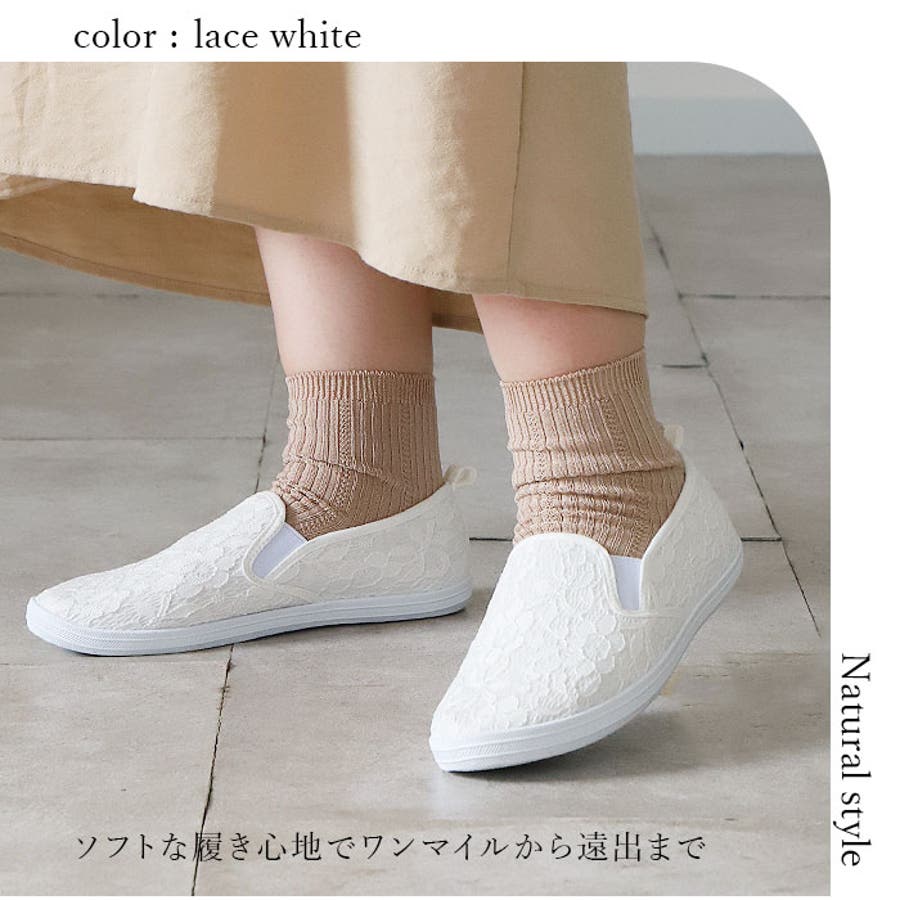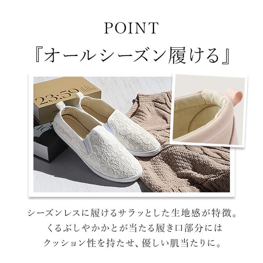 ・シーズンレスに履けるサラッとした生地感が特徴。くるぶしやかかとが当たる履き口部分にはクッション性を持たせ、優しい肌当たり。