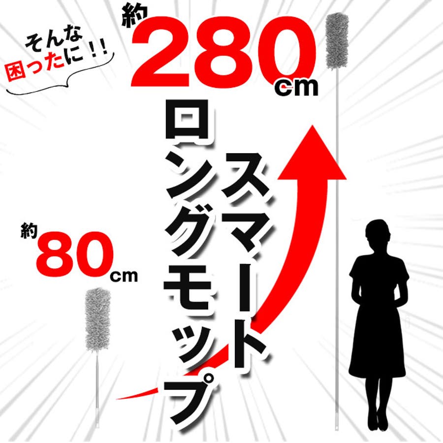 【キーワード】モップクリーナー ハンディ ロング ハタキ はたき ホコリ払い 高所 掃除 天井 ホコリ取り エアコン 埃 伸縮式通販 約 3m 280cm 曲がる 大掃除 お掃除グッズ スマートロングモップ