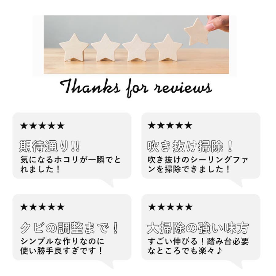 吹き抜けの窓や天井まで届くからやっと家の掃除ができました。ありがとうございました。買ってからは毎日けなまめに掃除ができるようになり助かっています