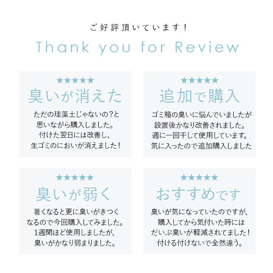 ・高い吸湿性と調湿性を持った珪藻土と炭、リサイクルアッシュ、全て自然素材で作られたゴミ箱用の脱臭吸湿剤。