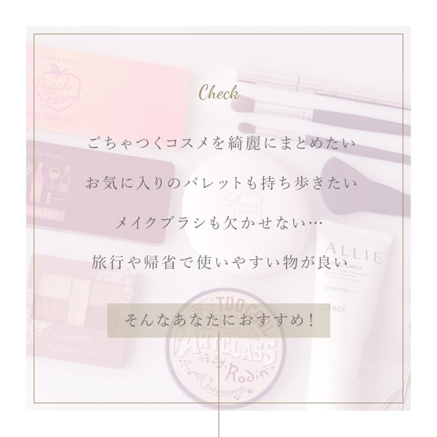 ・普段使いのコスメを、まとめてすっきり収納できるサイズ感。旅行や出張の際は、そのまま持ち出せて準備の時短に。上部には持ち手付き。