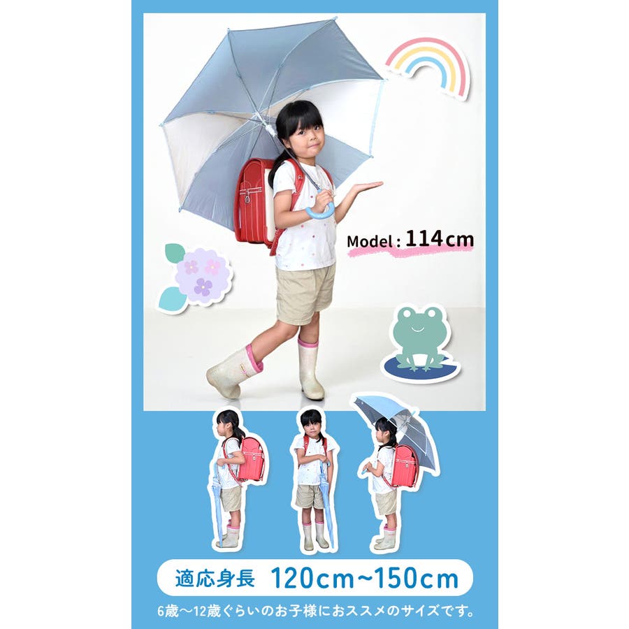 グラスファイバー骨を使用し、丈夫で軽いワンタッチ開閉式のキッズ傘です。