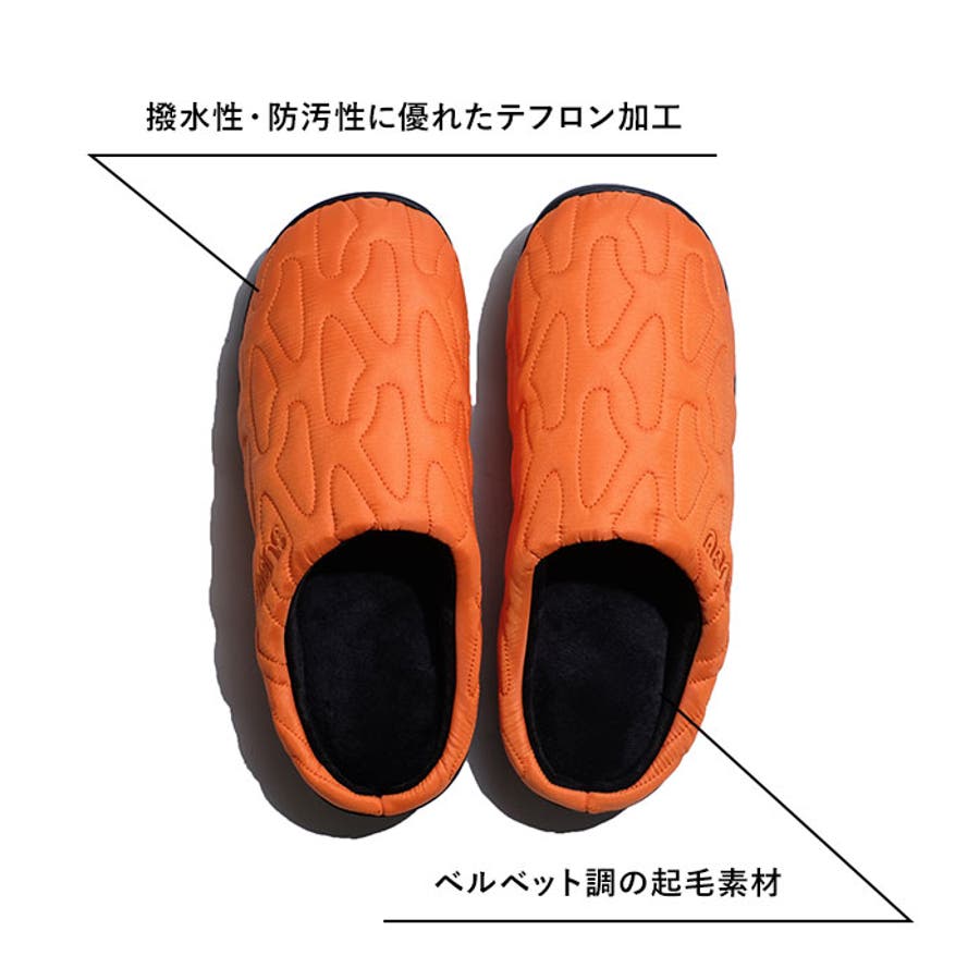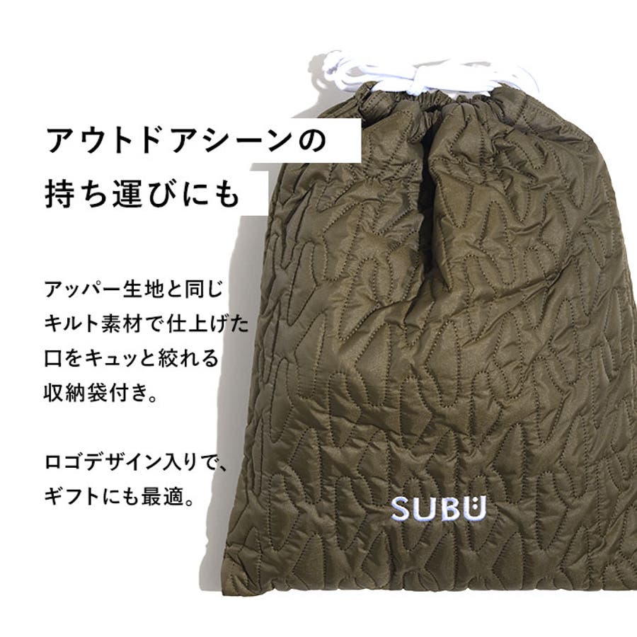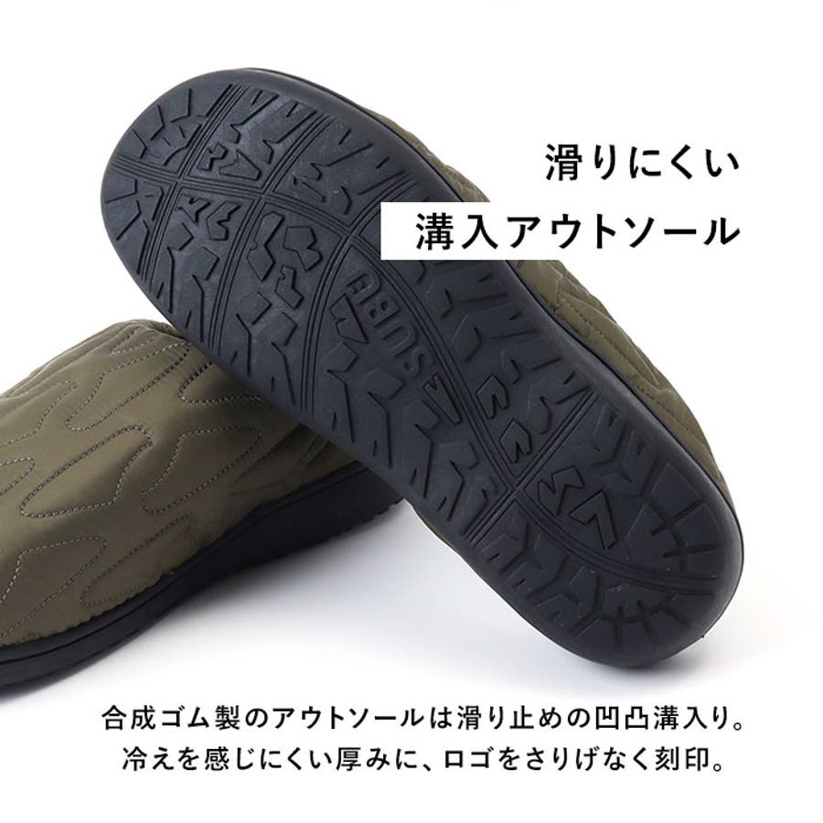 ・合成ゴム製のアウトソールにはしっかりと厚みを持たせ、地面からの冷えを感じにくいつくり。底面の滑り止めの凹凸には、SUBUのロゴをさりげなく刻印。