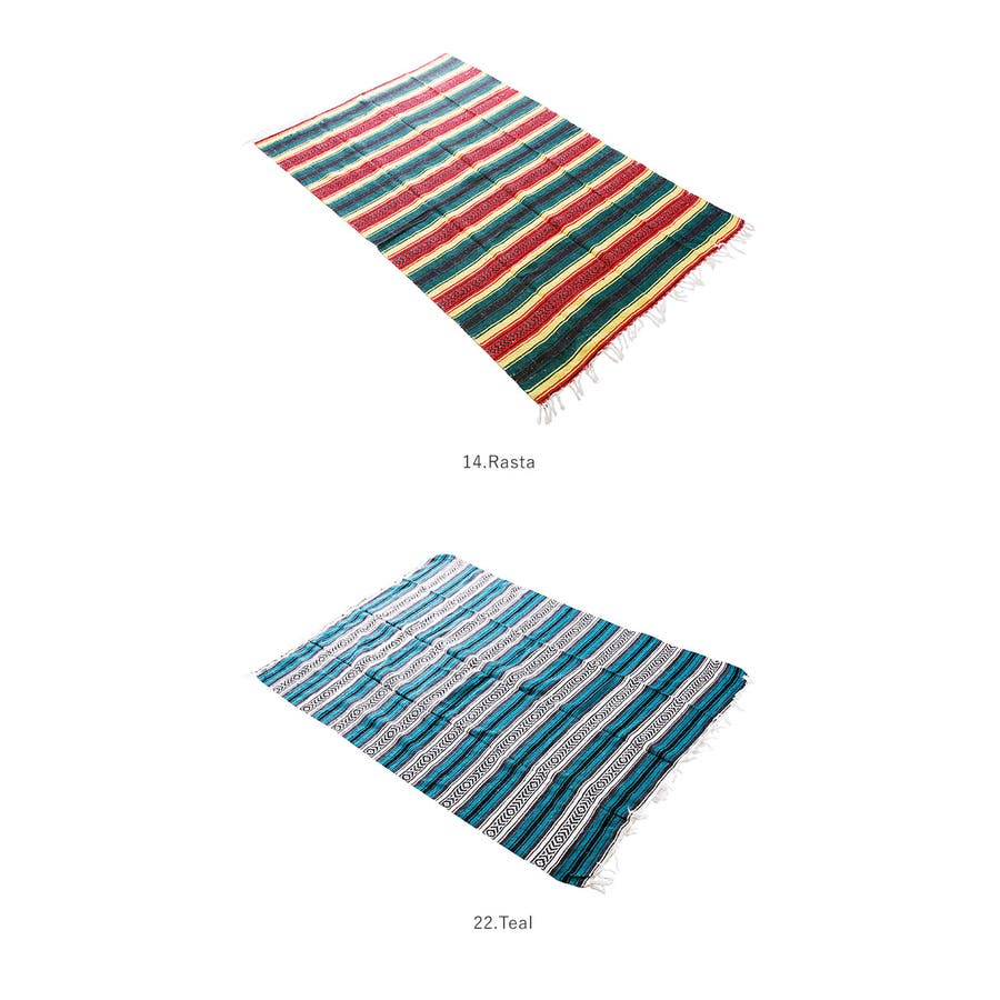 ・190cm×130cmの大判サイズで、薄手ながら目の詰まったしっかりした生地。ベッドカバーやアウトドアを楽しむ時の敷き物に活用してもオシャレ♪