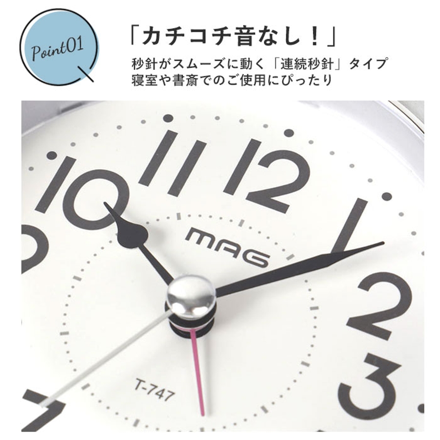 【キーワード】おしゃれ 置時計 アナログ 目覚まし時計 かわいい 女の子 子供 寝室 スヌーズ 電子音アラーム ライト 通販 小さいクロック インテリア ミグレイト ブランド ノア精密