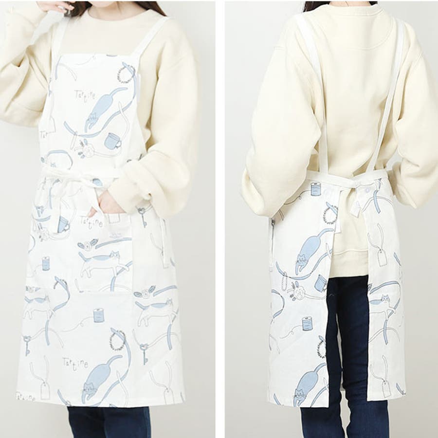 【キーワード】コットン インド 綿 かわいい 猫 柄 tartine オシャレ おしゃれ ねこ ポケット レディース アジアン ナチュラル キッチン キッチンエプロン 母の日 ギフト 男女兼用 春 夏 カジュアル 作業 贈り物 大人