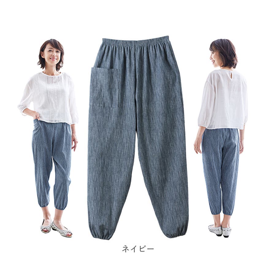 ・ウエストや裾は締め付け感のない総ゴム仕様で、動きやすくゆったりとした着心地。