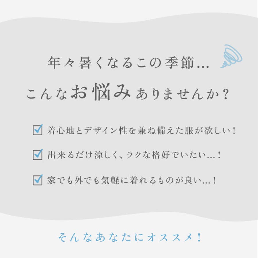 ・家事やリラックスタイムに気軽に履ける、腰回りからひざ下まで、ふんわりと包む込むような優しいシルエットも魅力の一つ。