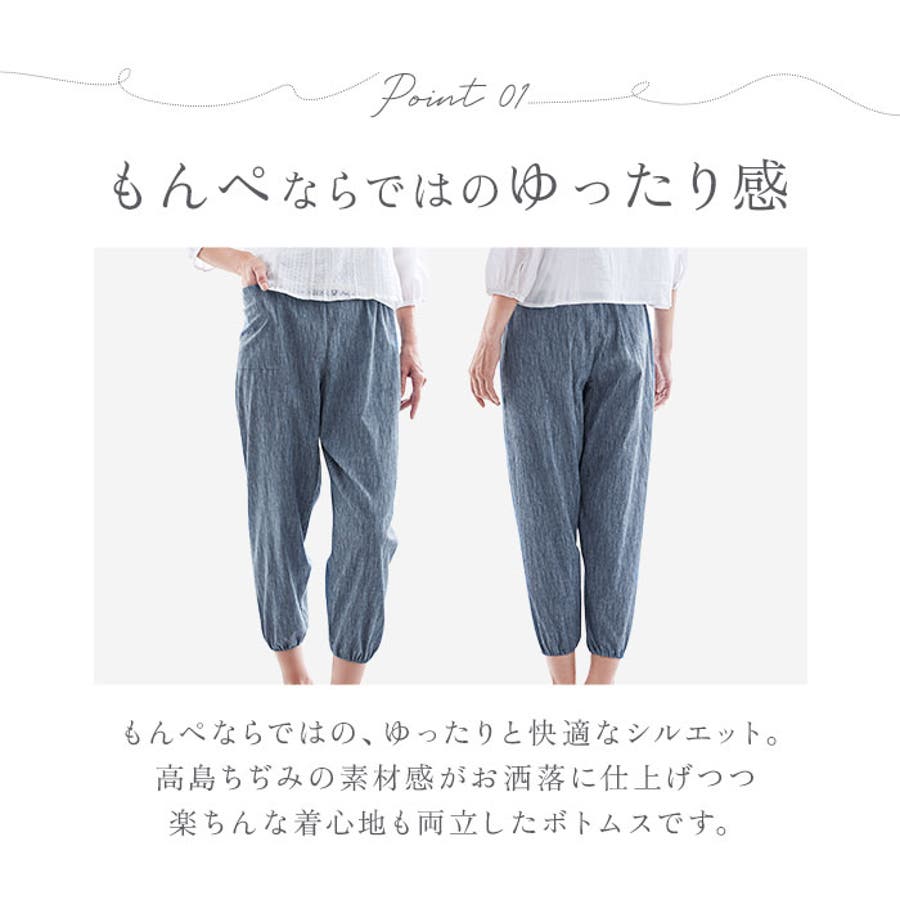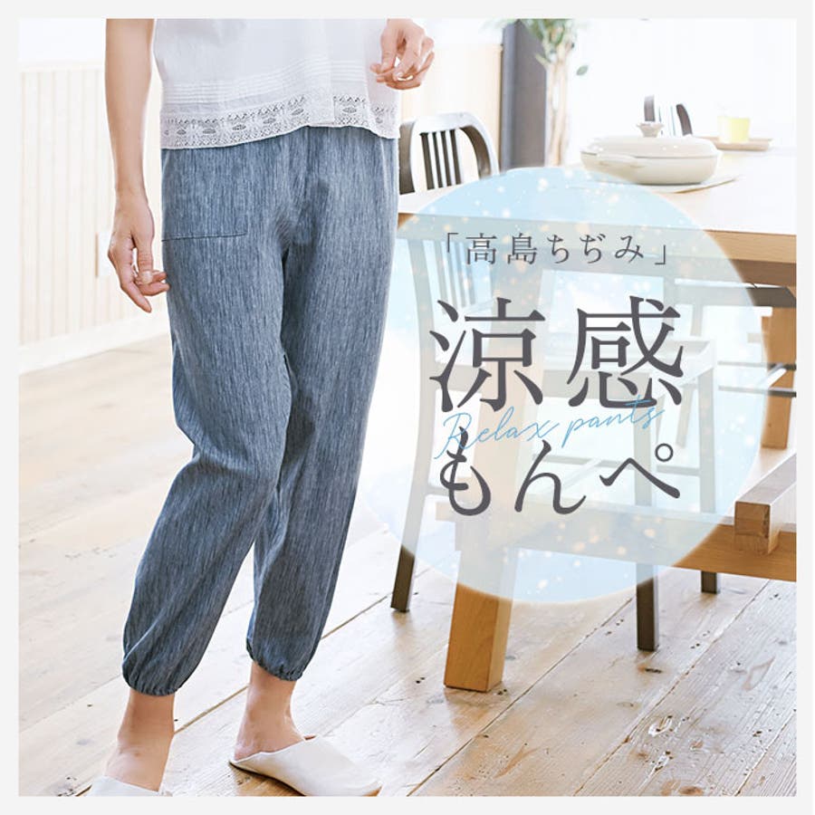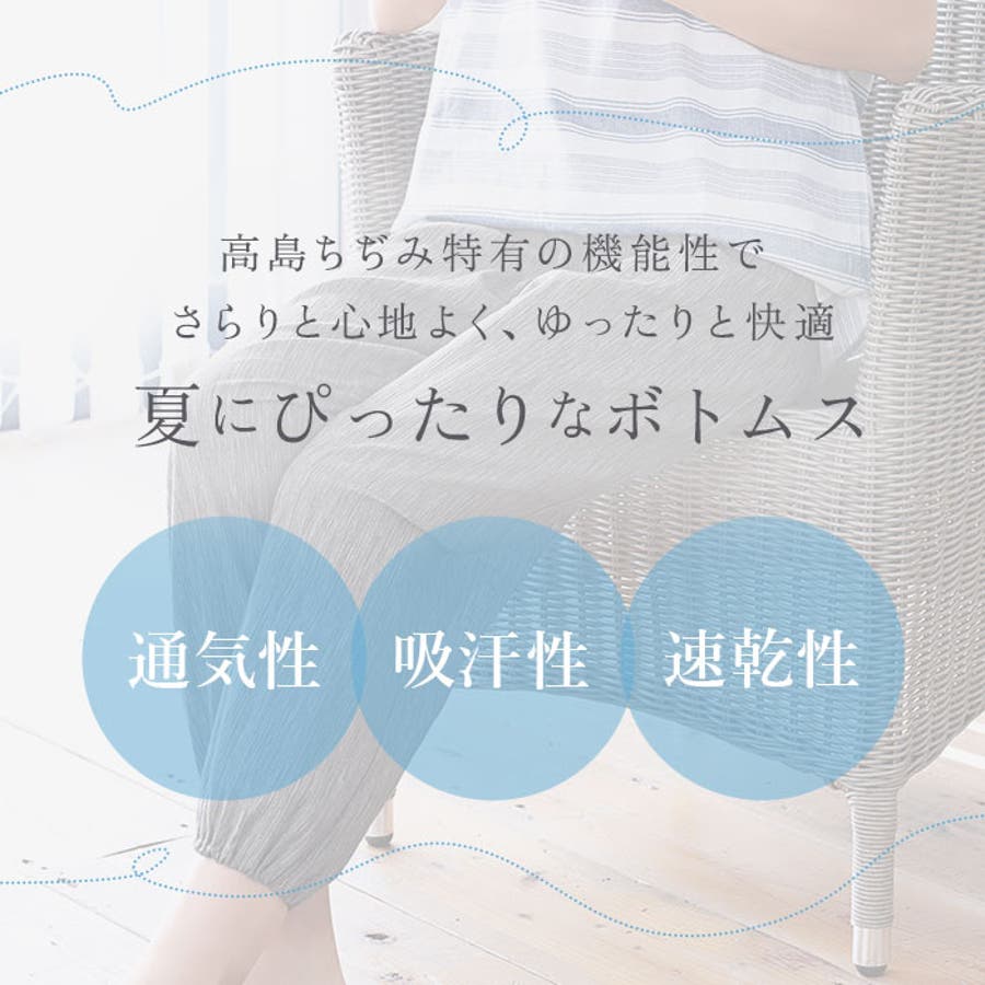 【キーワード】高島ちぢみ レディース もんぺ 長ズボン パンツ 涼感 吸汗性 通気性 速乾性 風通しが良く 動きやすい 部屋着 ルームウェア 作業着 普段着 さらっとした肌触り