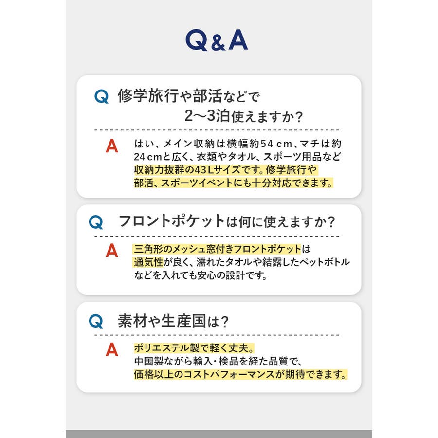 さん (30代 / 女性 )購入アイテム:商品 43L[種類] ネイビー - 大満足