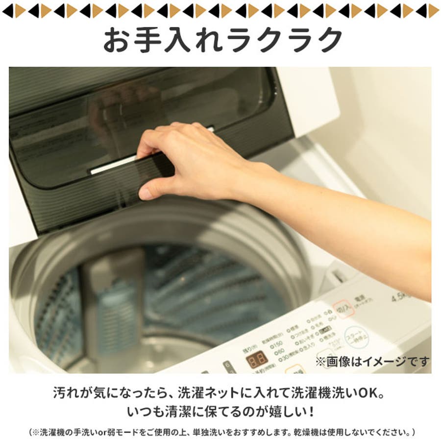 ・汚れが気になったら、洗濯ネットに入れて洗濯機洗いOK。いつも清潔に保てるのが嬉しい!(※洗濯機の手洗いor弱モードをご使用の上、単独洗いをおすすめします。乾燥機は使用しないでください。)