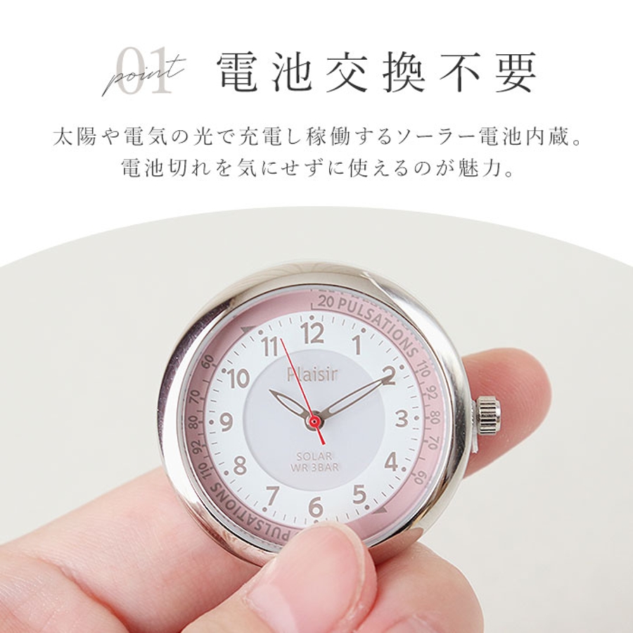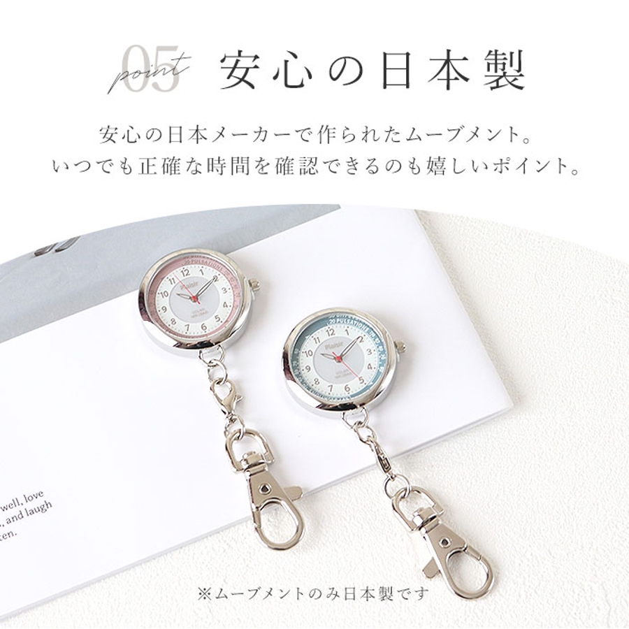 ・手元の作業を妨げないハンギングスタイルなので、医療現場で働く方や腕時計をつけられないお仕事の方、金属部分が肌に直接触れるのが心配な敏感肌の方にもピッタリ。