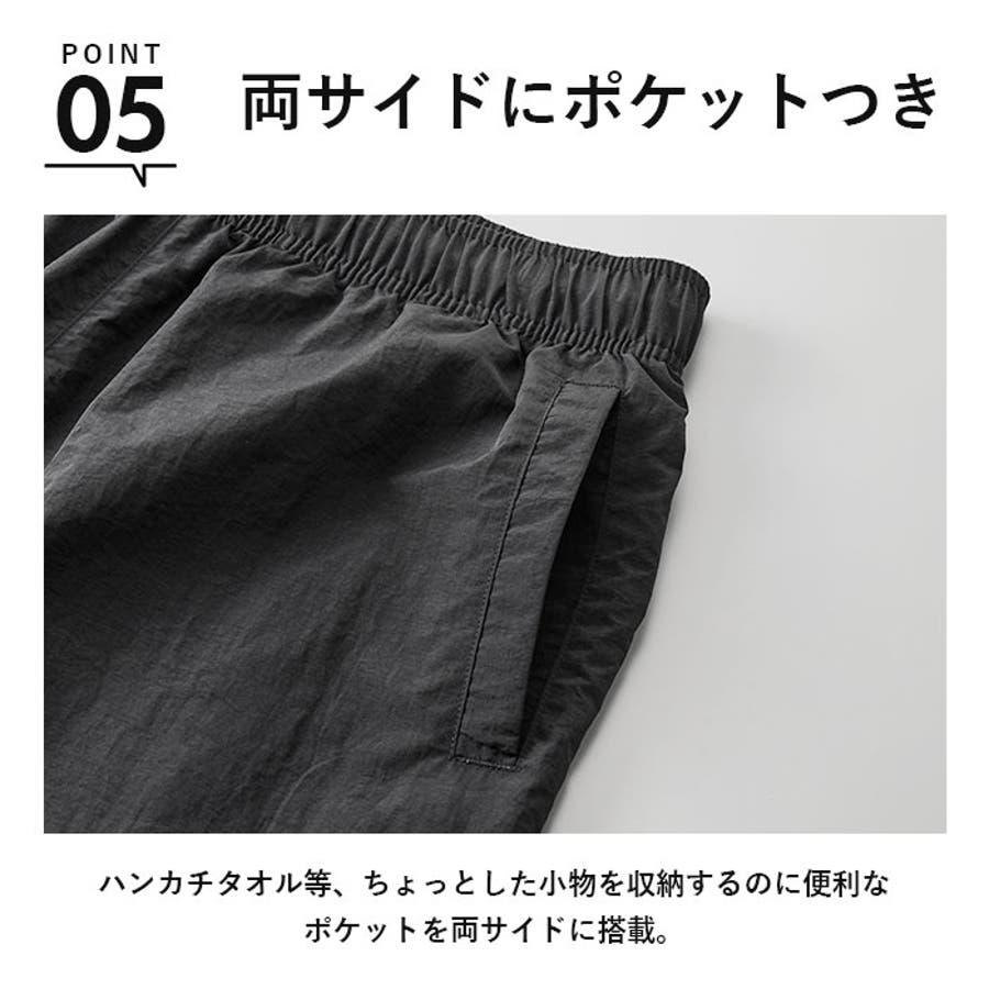・ウエストサイズの微調整ができるひもを内側に配置。キュッと絞っておけば運動中も落ちづらいのもポイント。