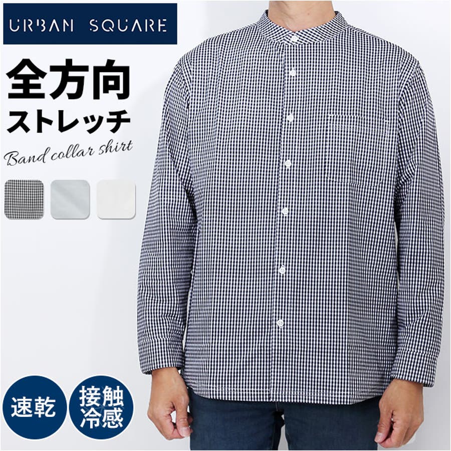 【キーワード】バンドカラーシャツ カジュアルシャツ ビジネスシャツ ビジカジ オフィスカジュアル 吸汗速乾 接触冷感 URBAN SQUARE アーバンスクエア 33307 ビジネス オフィス イージーケア 仕事着 トップス 男性 紳士