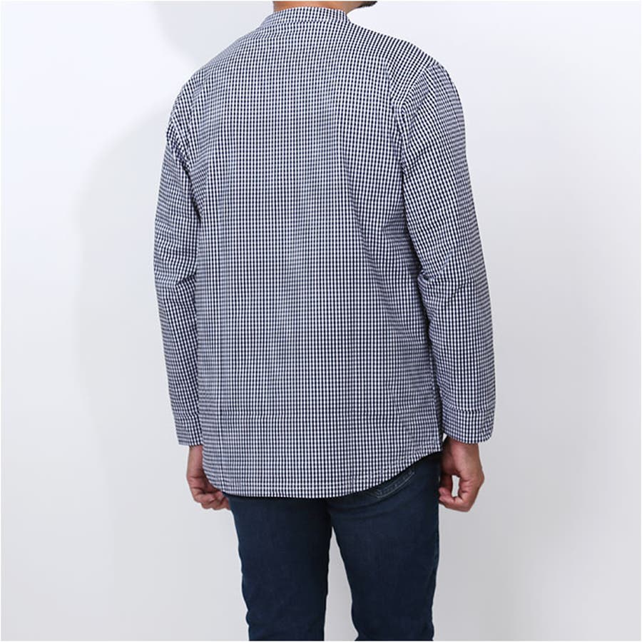 ・程よく抜け感のあるバンドカラーは首回りがスッキリ見え、1枚で着てもサマになる。