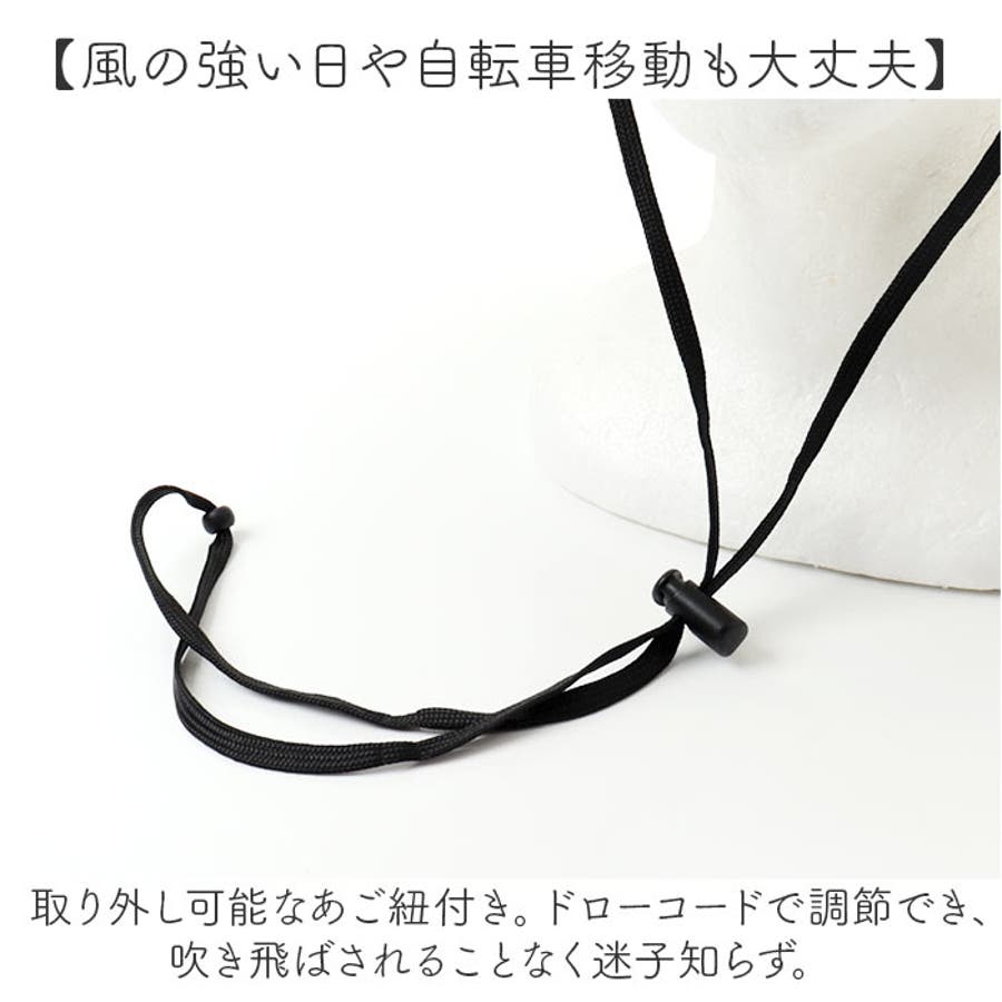 ・取り外し可能なあご紐付き。ドローコードで調節でき、吹き飛ばされることなく迷子知らず。