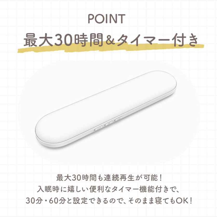 ・入眠時に嬉しい便利なタイマー機能を搭載。30分または60分と設定できるので、寝落ちしてもOK!