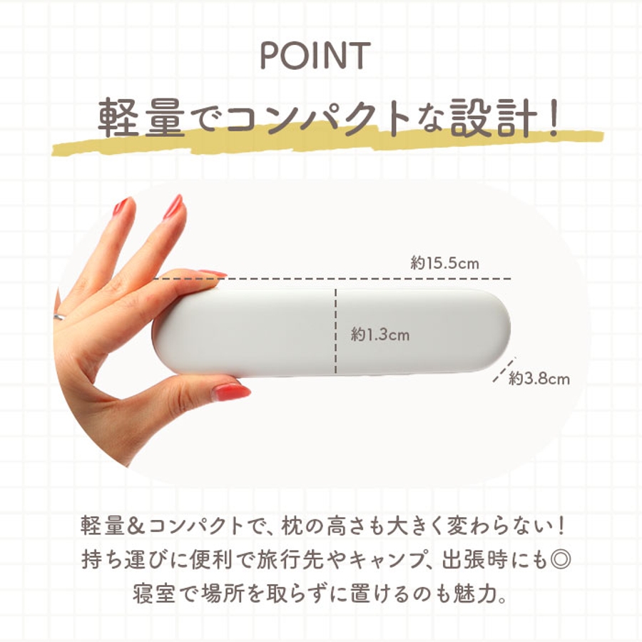 ・軽量&コンパクトサイズなので、持ち運びに便利!旅行先やキャンプ、出張時にも持ち運べる◎寝室で場所を取らずに置けるのも魅力。