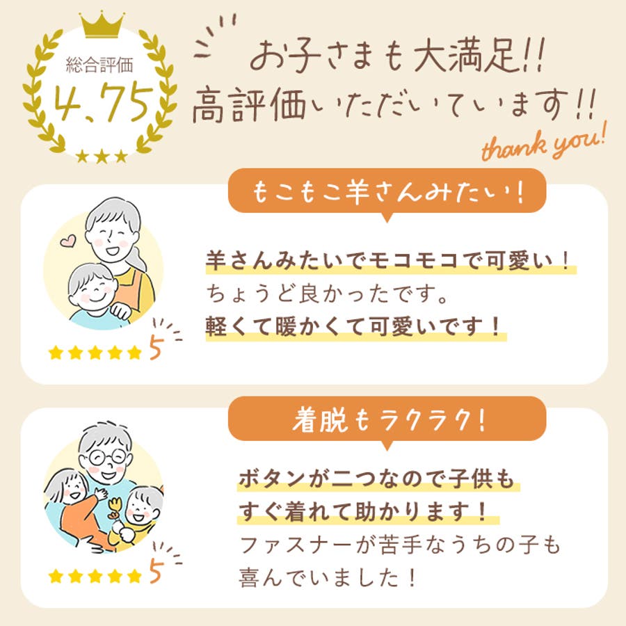 いつも着るとモコモコーってかわいいさん (30代 / 女性 / 身長140cm未満 / 体重40kg未満)購入アイテム:サイズ 120cm[種類] ブラウンサイズ感:ぴったり - 可愛い