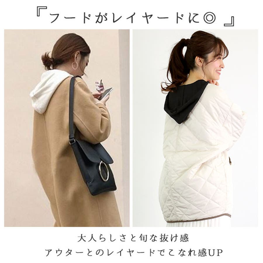 ・カジュアルすぎないフードがちょっとしたワンポイントに♪ベーシックなデザインで幅広いアイテムと相性良くコーディネートできる。