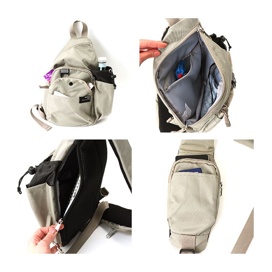 ・小物を探す手間が省ける、内外ポケット。簡易保冷機能付きのボトルポケットも装備◎