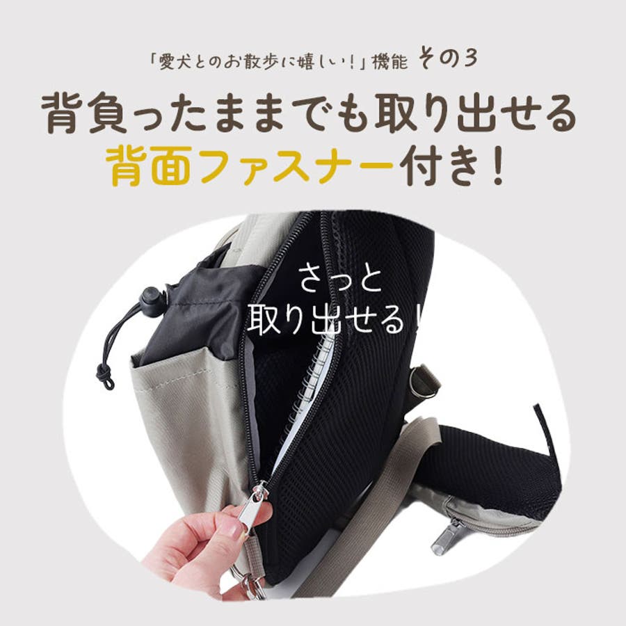 ・飼い主さんの、お散歩時の負担を軽減する機能を詰め込んだ「ワンかるお散歩ボディバッグ」。