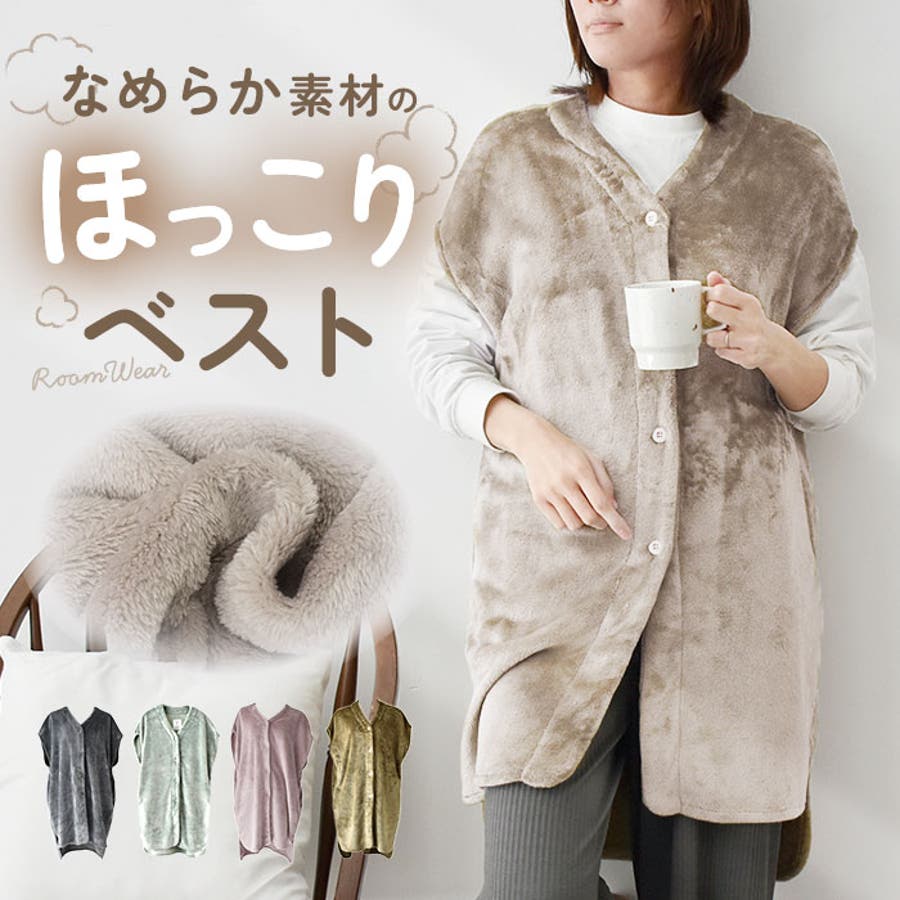 【キーワード】ロングベスト 部屋着 羽織 フリースベスト 着るブランケット モコモモ もこもこ 冬 冬物 可愛い かわいい レディース メンズ 前開き ボタン あったか 暖かい ノースリーブ Vネック 洗える おうち時間 おしゃれ WARMY