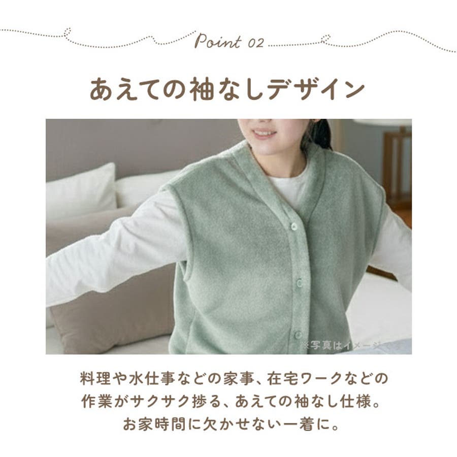 ・料理や水仕事などの家事、在宅ワークなどの作業がサクサクはかどる、あえての袖なし仕様!