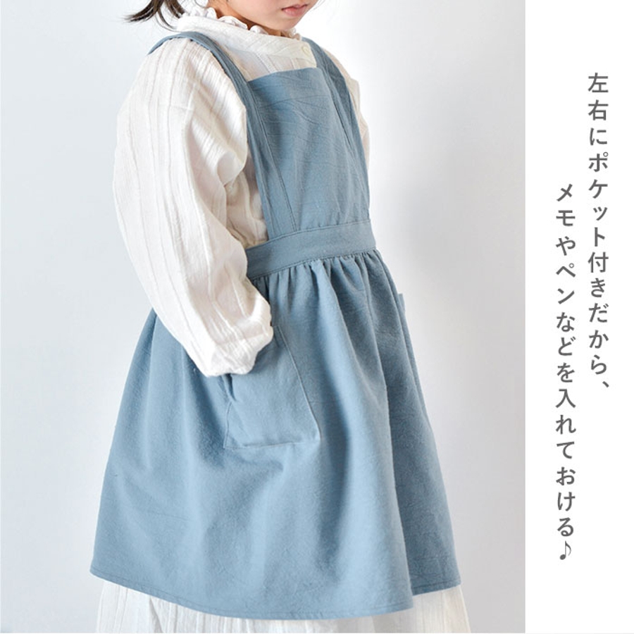【キーワード】おしゃれ 女の子 ガールズ かわいい 親子 リンクコーデ 誕生日 プレゼント シンプル 前掛け おそろい 麻 リネン通販 ナチュラル ガーデニング お手伝い ワンピースエプロン コットン