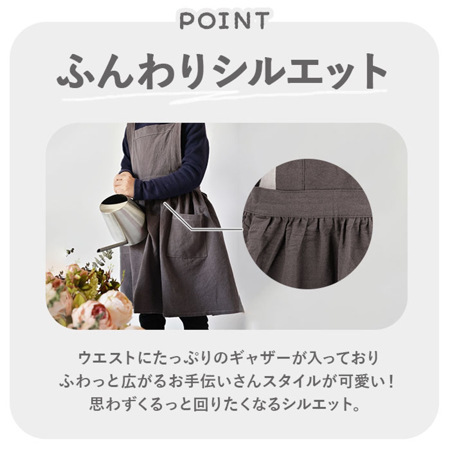 ・エプロンの左右にポケットを2か所配置。ハンカチやティッシュ、レシピを書き留めたメモも入ってとっても便利!