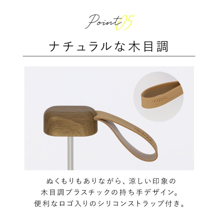 ・ハンドルはナチュラル感がある木目調プラスチックの軽量タイプ。
