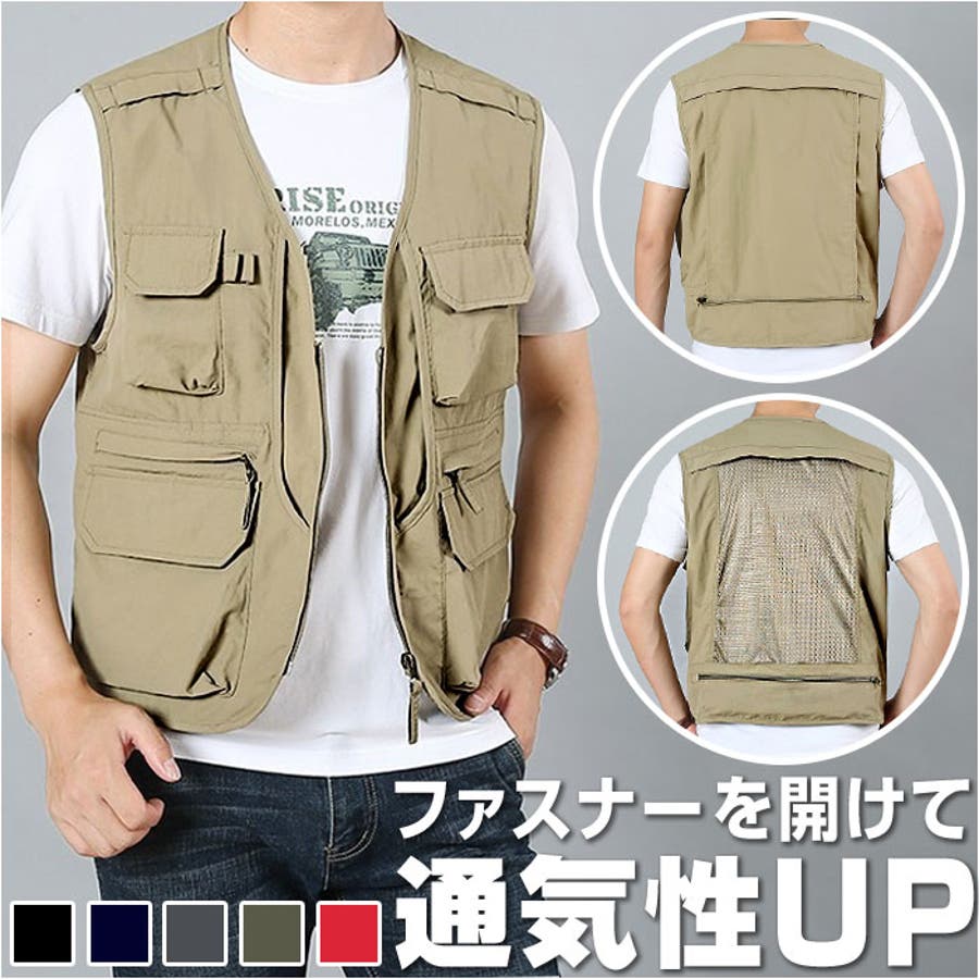 【キーワード】ジレ ジャケット 釣りベスト ワークベスト 作業着 ワーク服 作業服 チョッキ 羽織 羽織り ジップアップ ポケット 速乾性 通気性 多機能 アウトドア スポーツ カジュアル フィッシング キャンプ 撮影用