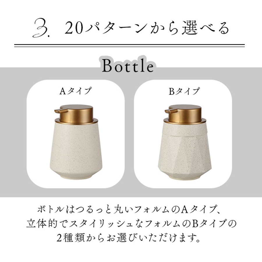 ・ポンプ部はマットゴールドまたはマットグレー等、計20パターンの中からお好みの組み合わせがチョイス可能♪(※各カラーによりデザインやカラーの組み合わせが異なります。予めご了承くださいませ。)