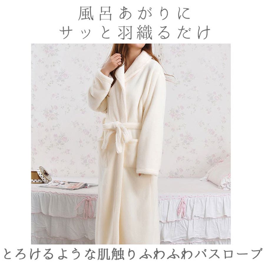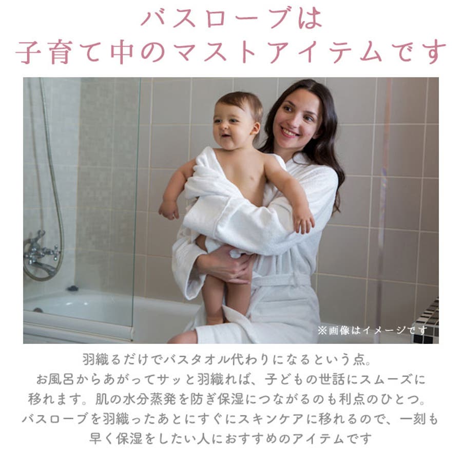 ・ふんわり柔らかい素材で、首元から下半身まで優しく包み込んでくれるバスローブ。