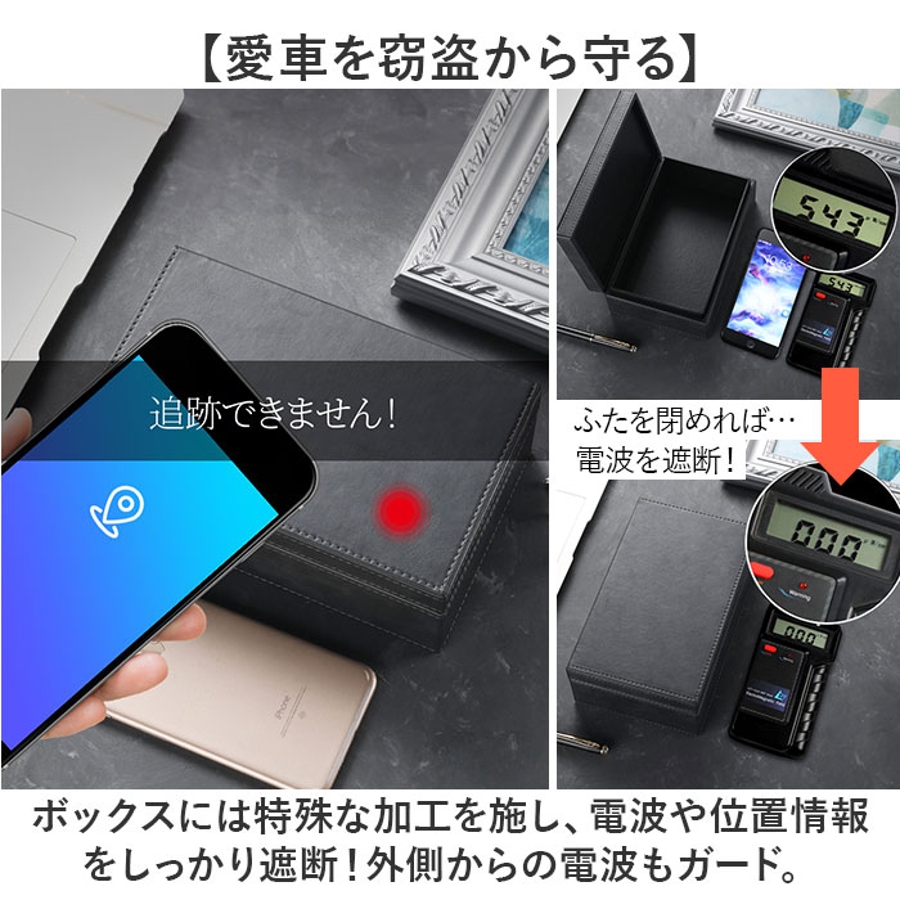 ・ボックスには特殊な加工を施し、電波や位置情報をしっかり遮断!外側からの電波もガード。