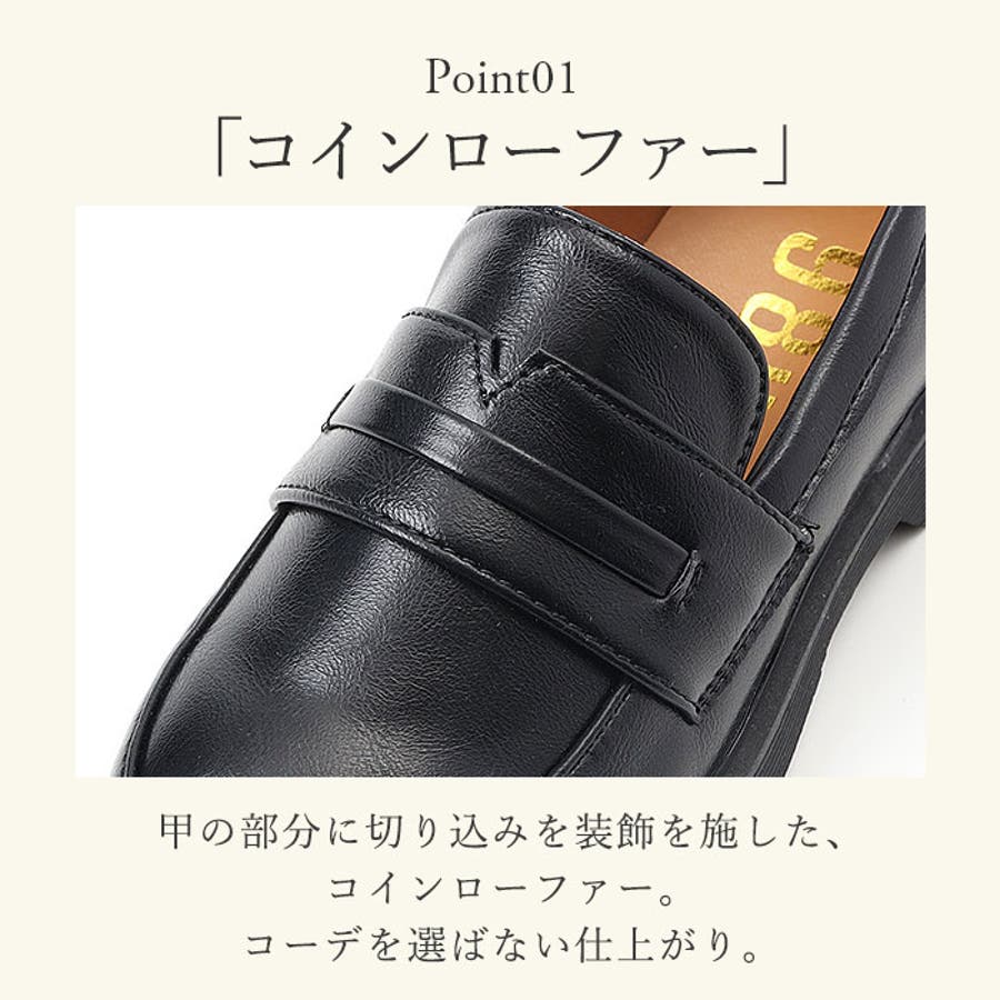 ・甲の部分に切り込みを入れた装飾を施した、コインローファー。コーデを選ばない仕上がり。