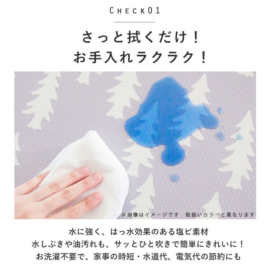 ・水に強い塩ビ素材なので、水しぶきや油汚れもサッとひと拭きで簡単キレイ!掃除機でゴミも簡単に取れるので、お掃除が楽になり、キッチンをいつも清潔に保ちやすい。