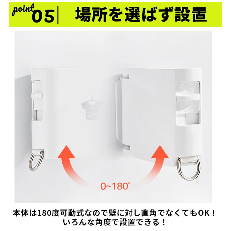 ・本体は180度可動式なので壁に対し直角でなくてもOK!いろんな角度で設置できる!