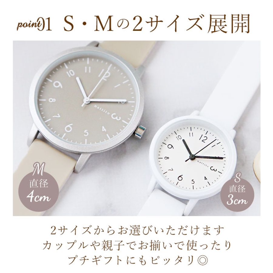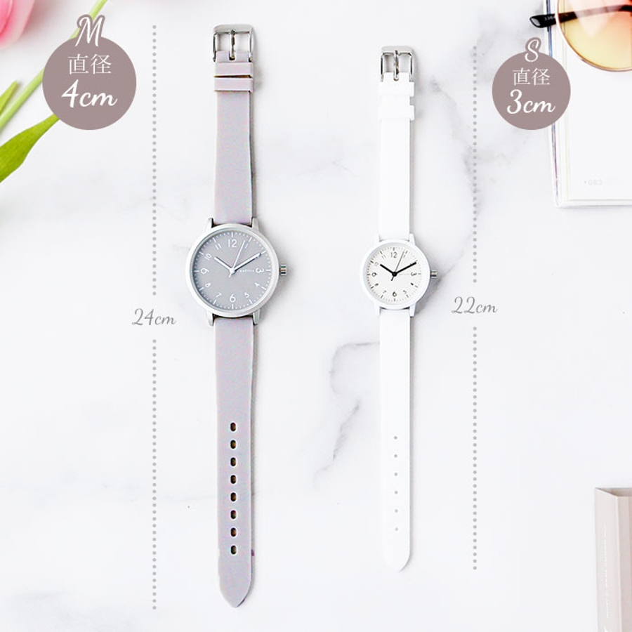 ・丸形文字盤のサイズは直径約3cmのSサイズと直径約4cmのMサイズから選べる。サイズ違いでカップルで使ったり、ギフトにもオススメ◎