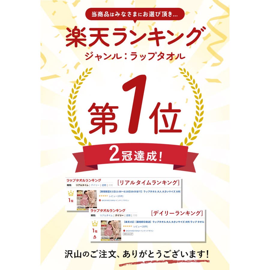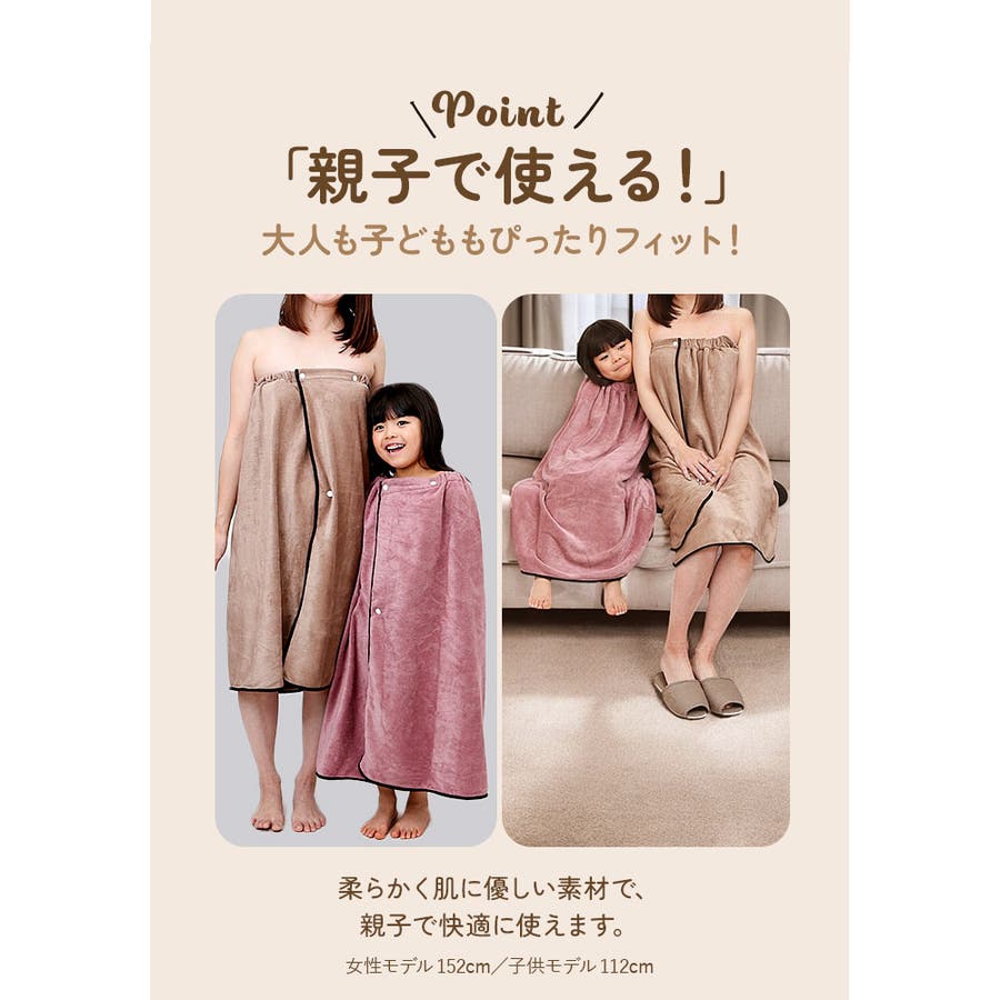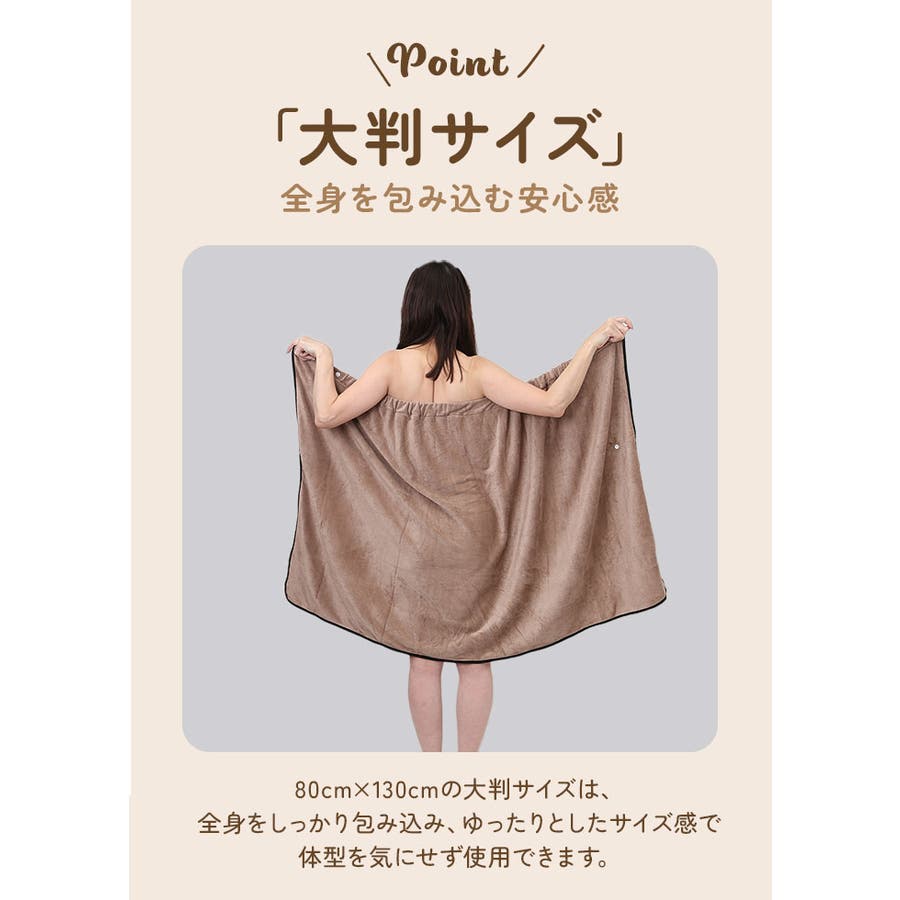・お風呂上りにパッと巻いて、ホッとリラックス。たっぷり大判サイズのラップタオル。