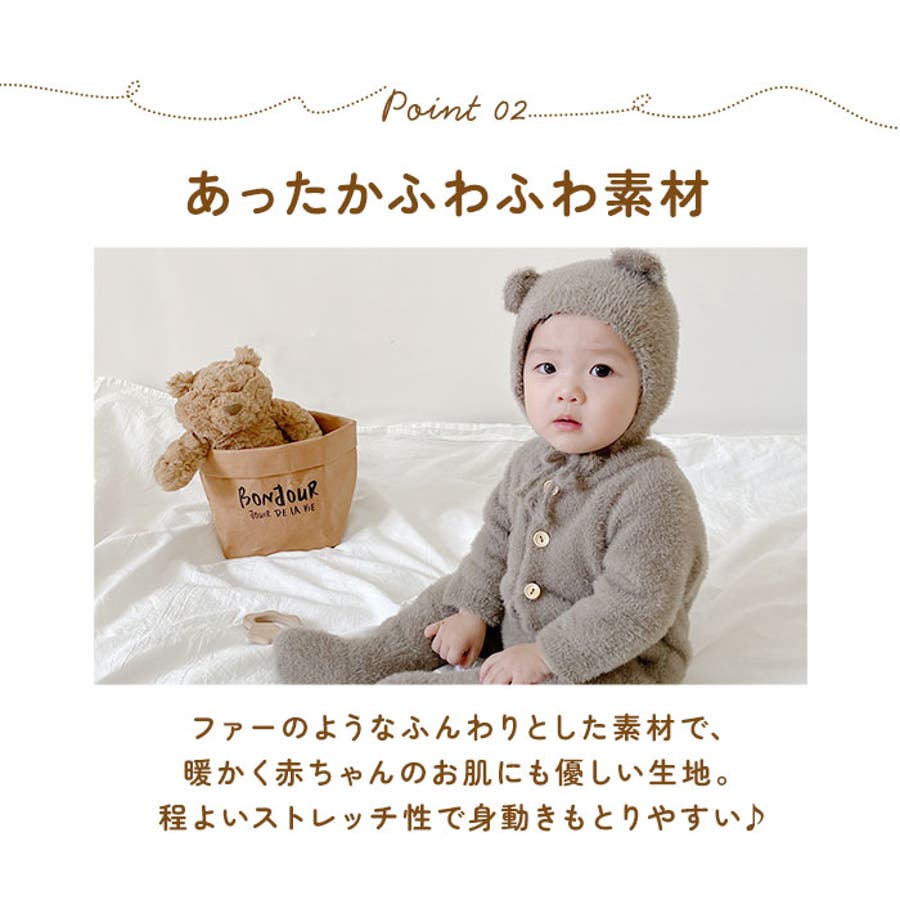 【キーワード】ロンパース カバーオール ジャンプスーツ ベビー 赤ちゃん くま 熊耳 帽子 前開き 足つき ミンクカシミア 防寒 暖かい 年賀状 撮影 女の子 男の子 部屋着 パジャマ くまさん かわいい 可愛い