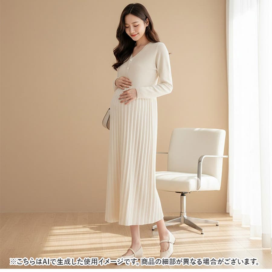 【キーワード】マタニティウェア プリーツワンピース 授乳服 妊婦服 ウエア 長袖 ワンピ 前ボタン 前開き ニット 切り替え シンプル 無地 通勤 オフィス フォーマル 産前 産後 お宮参り 秋 冬 おしゃれ オシャレ