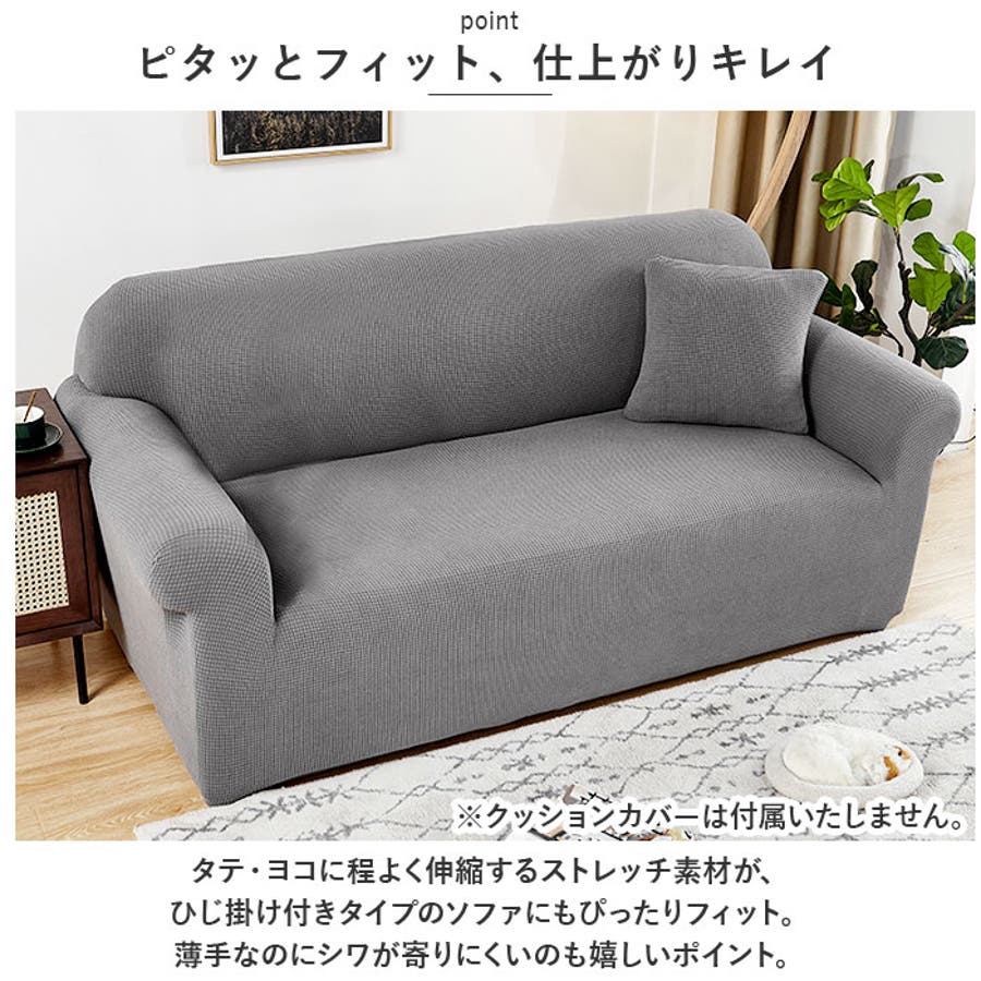 ・ポリウレタン配合の生地がぐんと伸びて、ソファ全体をすっぽりカバーするので、汚れや傷が目立つソファも気軽に着せ替えが可能♪
